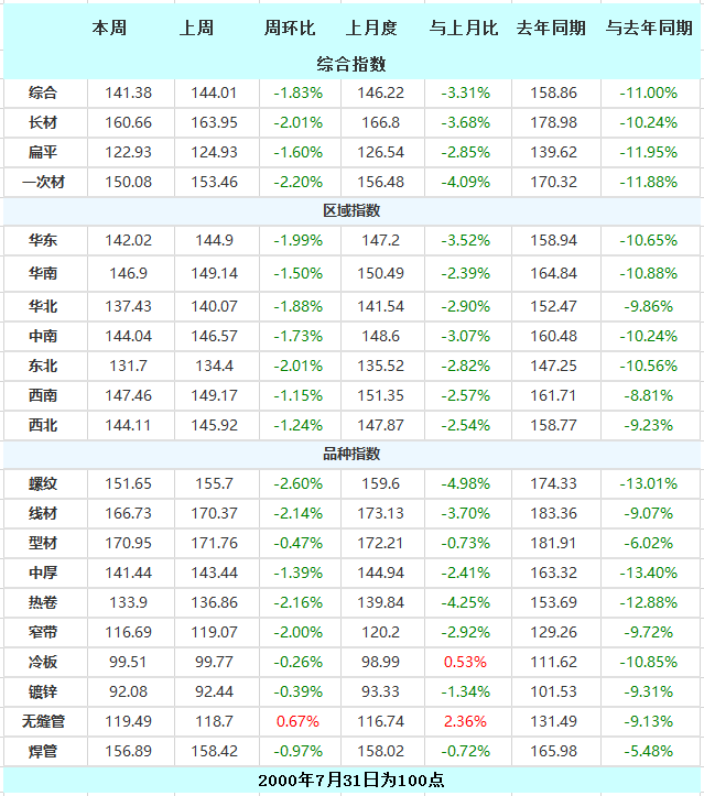 受盤面鋼價大幅下行影響,現(xiàn)貨報價跌幅擴大,其中螺紋均價跌48元/噸,熱卷均價跌37元/噸,成交量較差;當(dāng)前需求預(yù)期較差,鋼材成本支撐減弱,鋼價呈現(xiàn)塌方式下跌,而供需錯配的調(diào)整仍需時間,短期維持弱勢調(diào)整;預(yù)計下周盤面鋼價繼續(xù)弱勢調(diào)整,現(xiàn)貨價格偏弱運行。 (來自鋼鐵資訊)